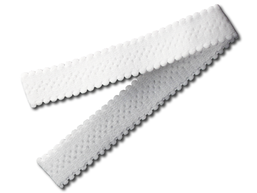 This plain, woven elastic measures 19mm wide (3/4") but can be made to almost any width. It features small bubbles on both edges. This elastic is relatively firm and can be used for straps as well as a decorative trim.